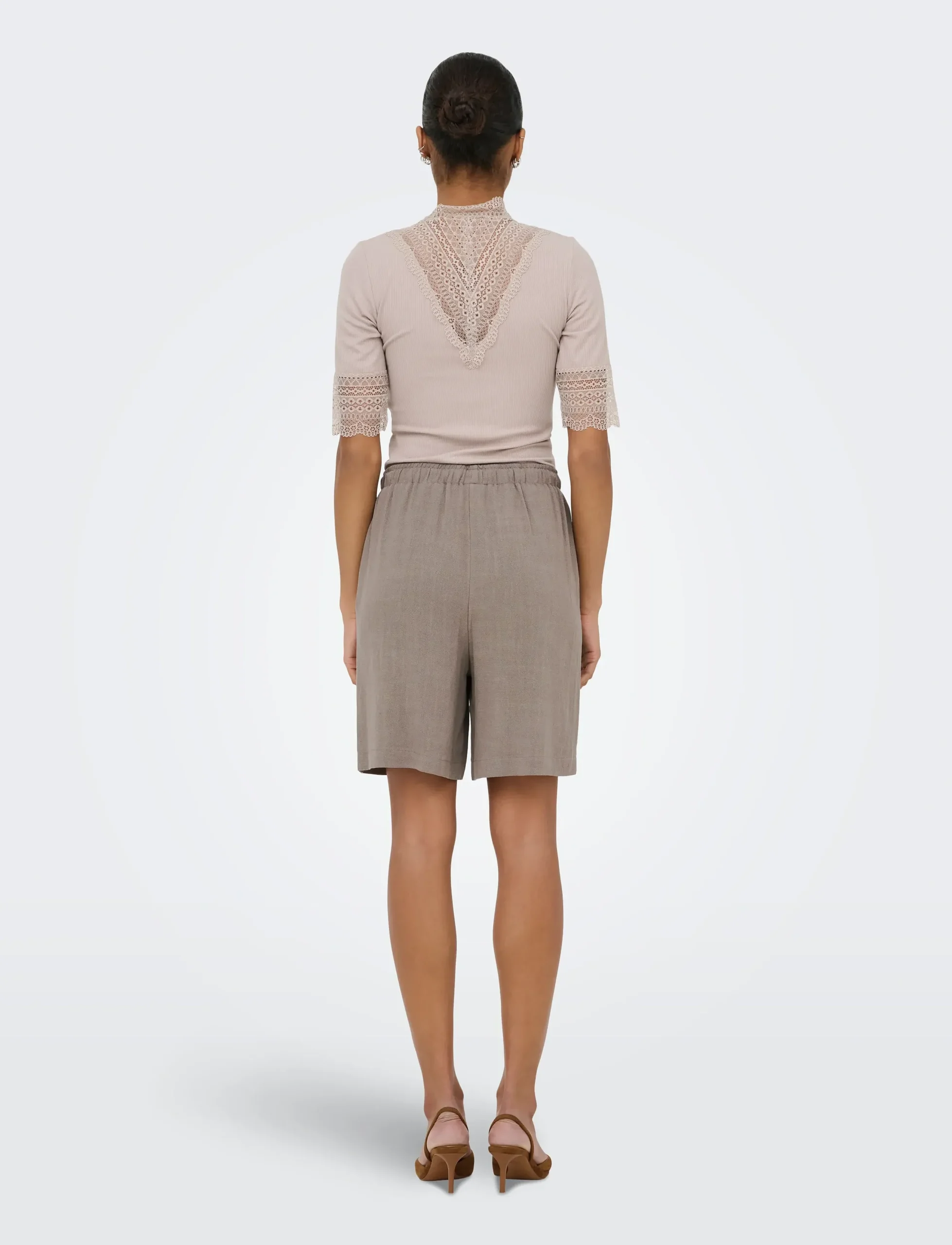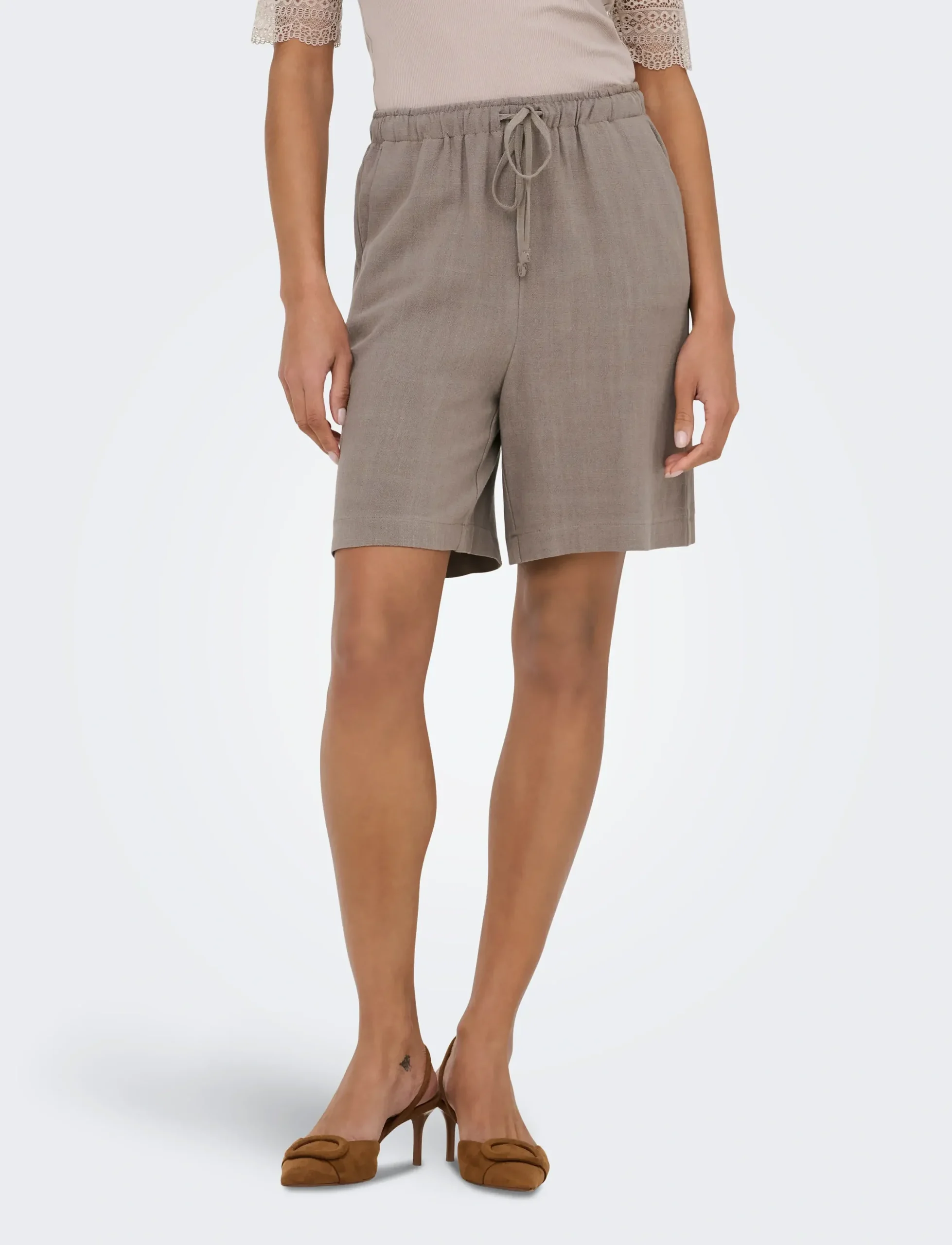 15333032 SIESTA PULL-UP LIN SHORTS WALNUT